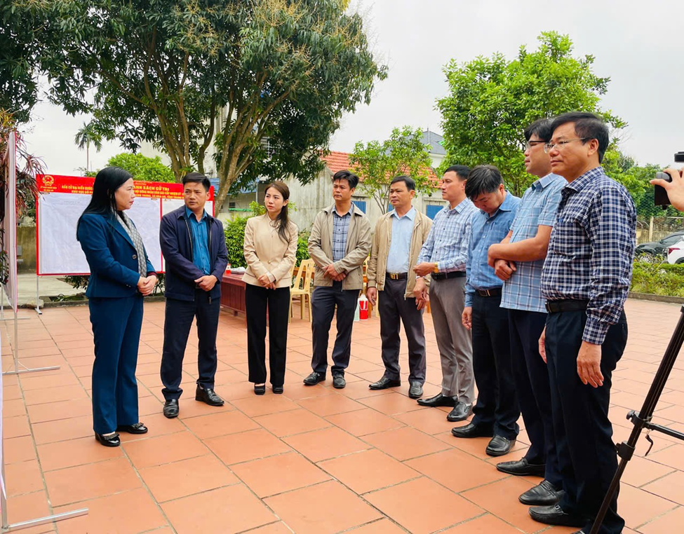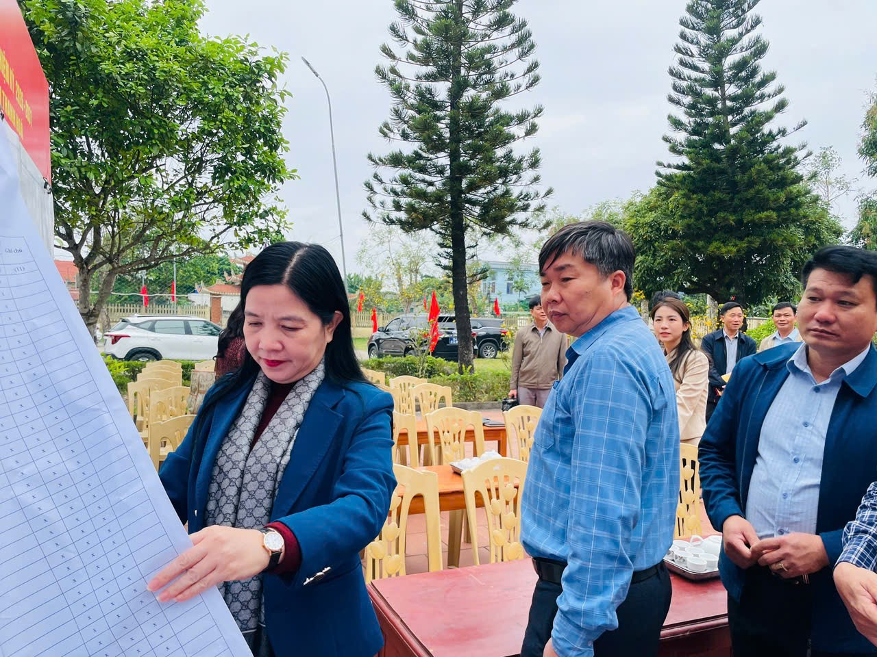 Đồng chí Chủ nhiệm Ủy ban Kiểm tra Tỉnh ủy Phạm Thị Thanh Thủy trao đổi với lãnh đạo xã và Tổ bầu cử khu vực bỏ phiếu số 2, xã Nga An.